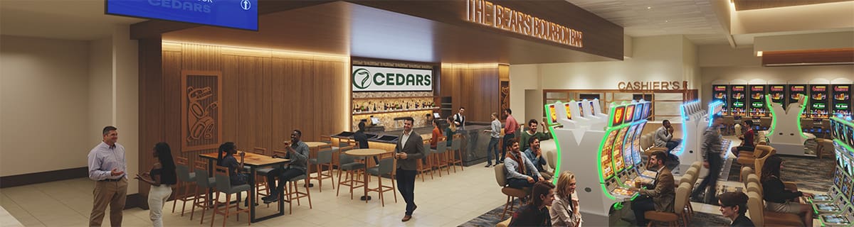 Light, airy, and bright! The East Side Gaming Floor newly remodeled space will still host your favorite slots and table games, but with an elegant twist. Custom carpet, new tiled surfaces, and updated wall and ceiling treatments are just the beginning of this newly re-imagined space. Digital way-finders, upgraded overhead sound, and lighten slot machine cabinets will all lend to the new gaming experience on the East Side Gaming Floor.